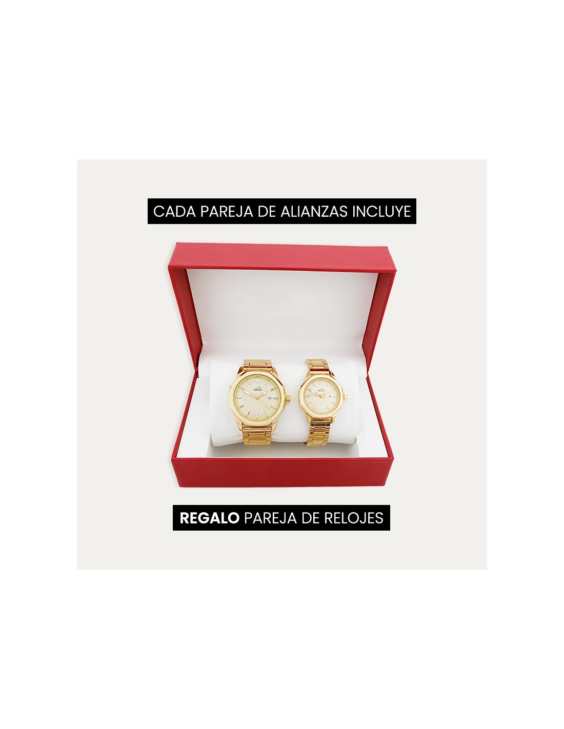 Cada pareja de alianzas incluye de REGALO una pareja de relojes, (los relojes pueden variar).