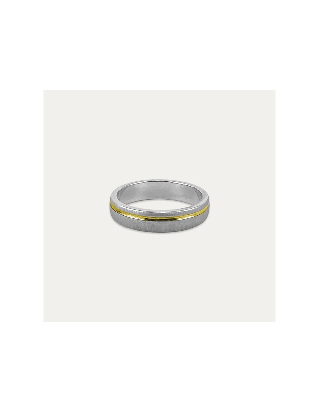 Alianza de Plata Bicolor 925mlm. Una de las alianzas más finas de la colección, una alianza de plata atravesada por una fina línea de plata dorada.