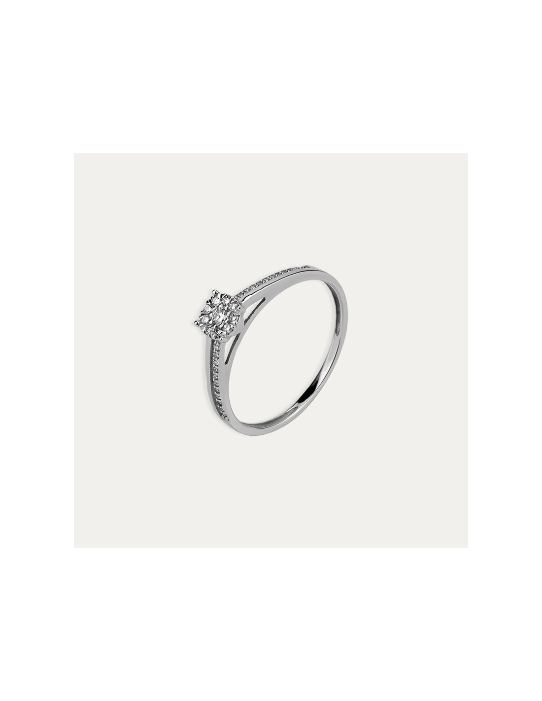 Anillo de Oro Blanco 9k con Brillantes Flor Lustra