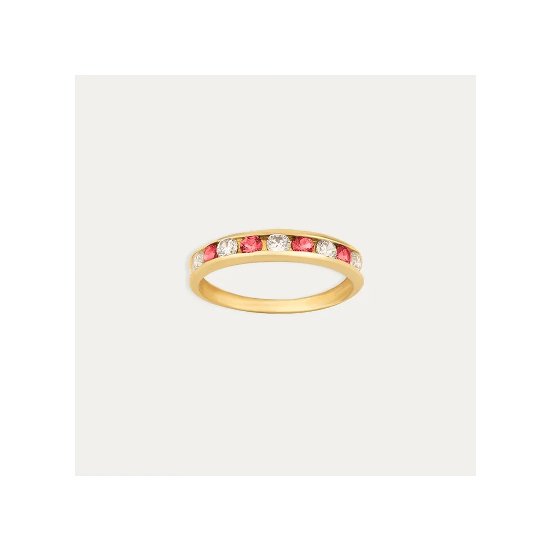 Sortija en Oro 9 quilates con carril de circonita Rubí y blanca.