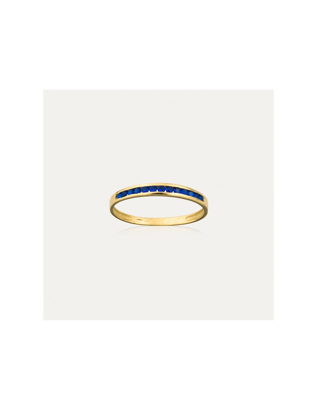 Anillo en Oro 18k con piedras en carril de color azul.