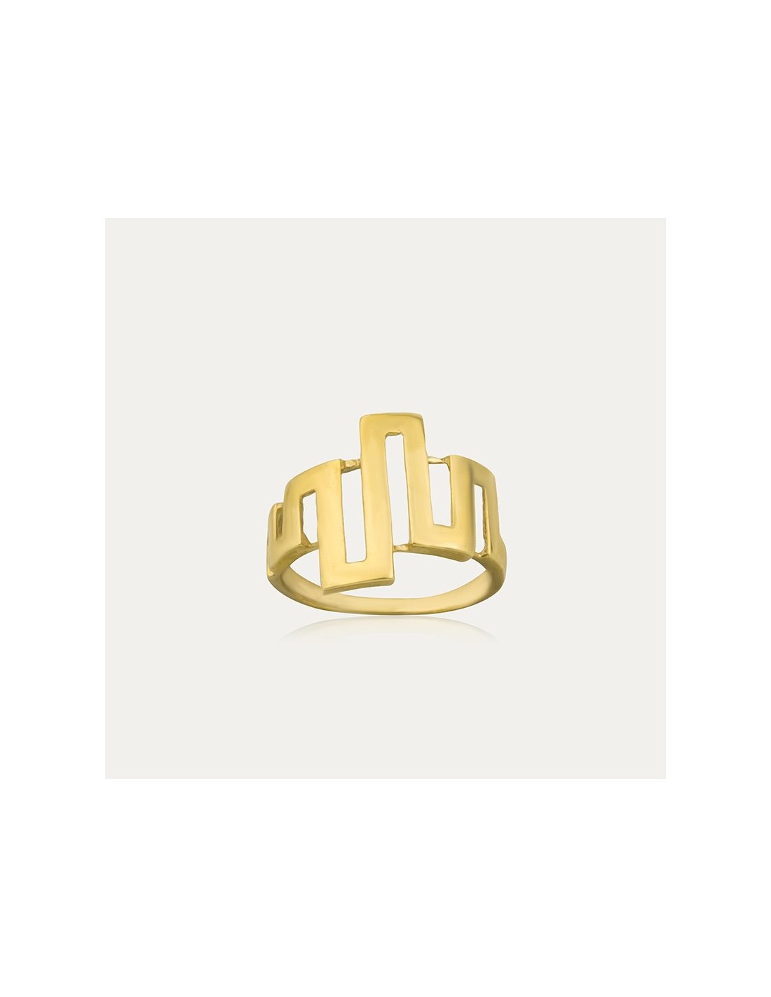 Anillo en Oro 9k, con un diseño de torres abstractas en su cabeza.