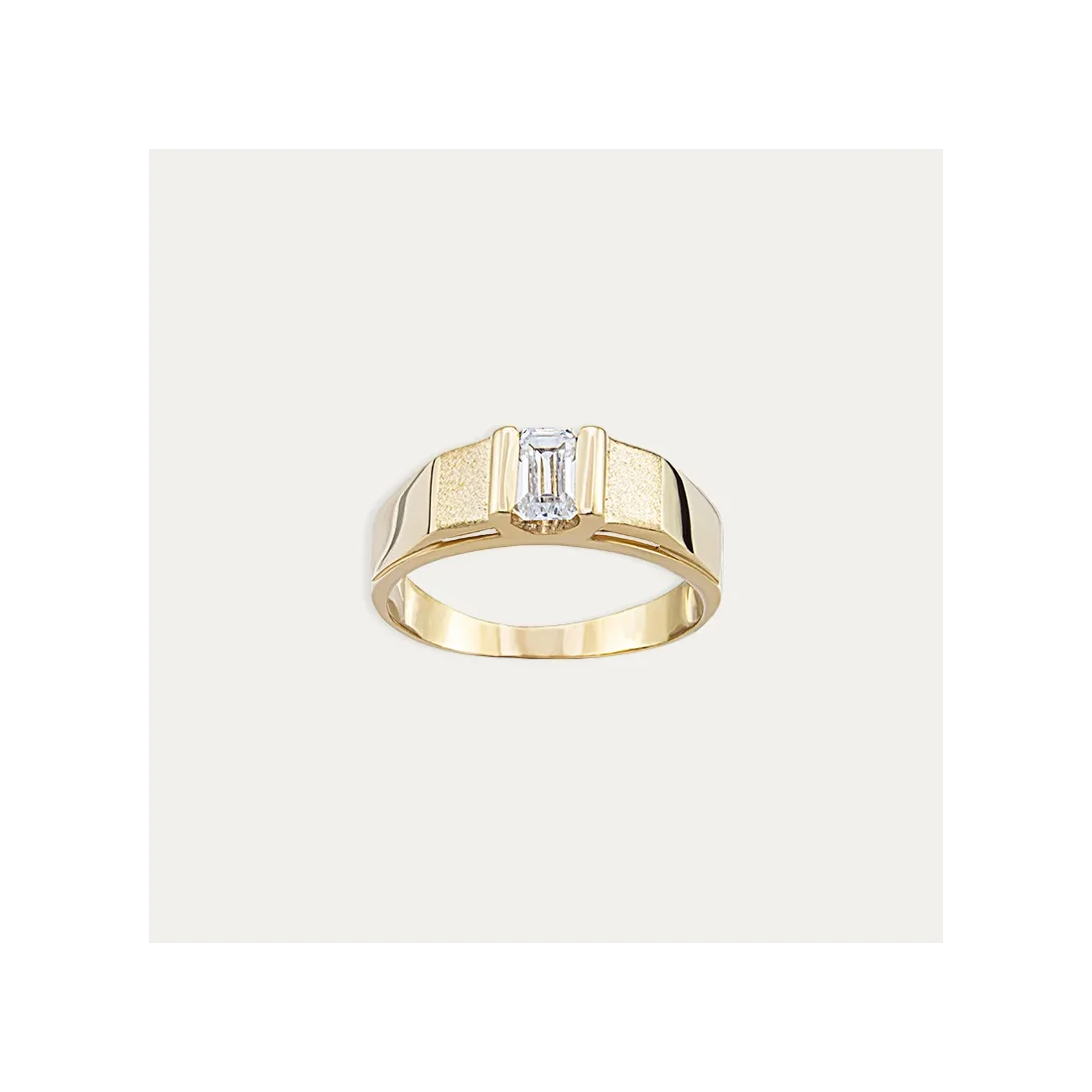 Este solitario de oro de 9 quilates para caballero combina elegancia y carácter en un diseño moderno con acabado en brillo y mate. Incorpora una circonita central de estilo talla esmeralda, que aporta un toque sofisticado y masculino sin excesos. Fabricado en oro 9k, es una joya resistente y cómoda, ideal para uso diario o para ocasiones especiales. Perfecto como anillo distintivo o como regalo elegante para hombre.