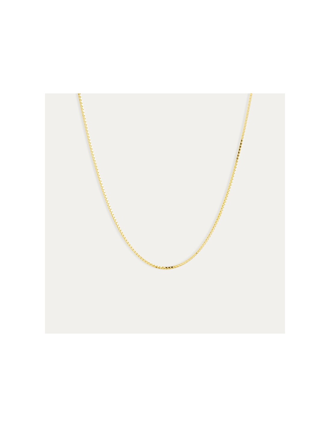 Cadena fabricada en Oro de 9 kilates con eslabón estilo veneciano. Una joya ligera, ideal para combinar con una cruz o un colgante, completando y aportando clase a tu estilo.