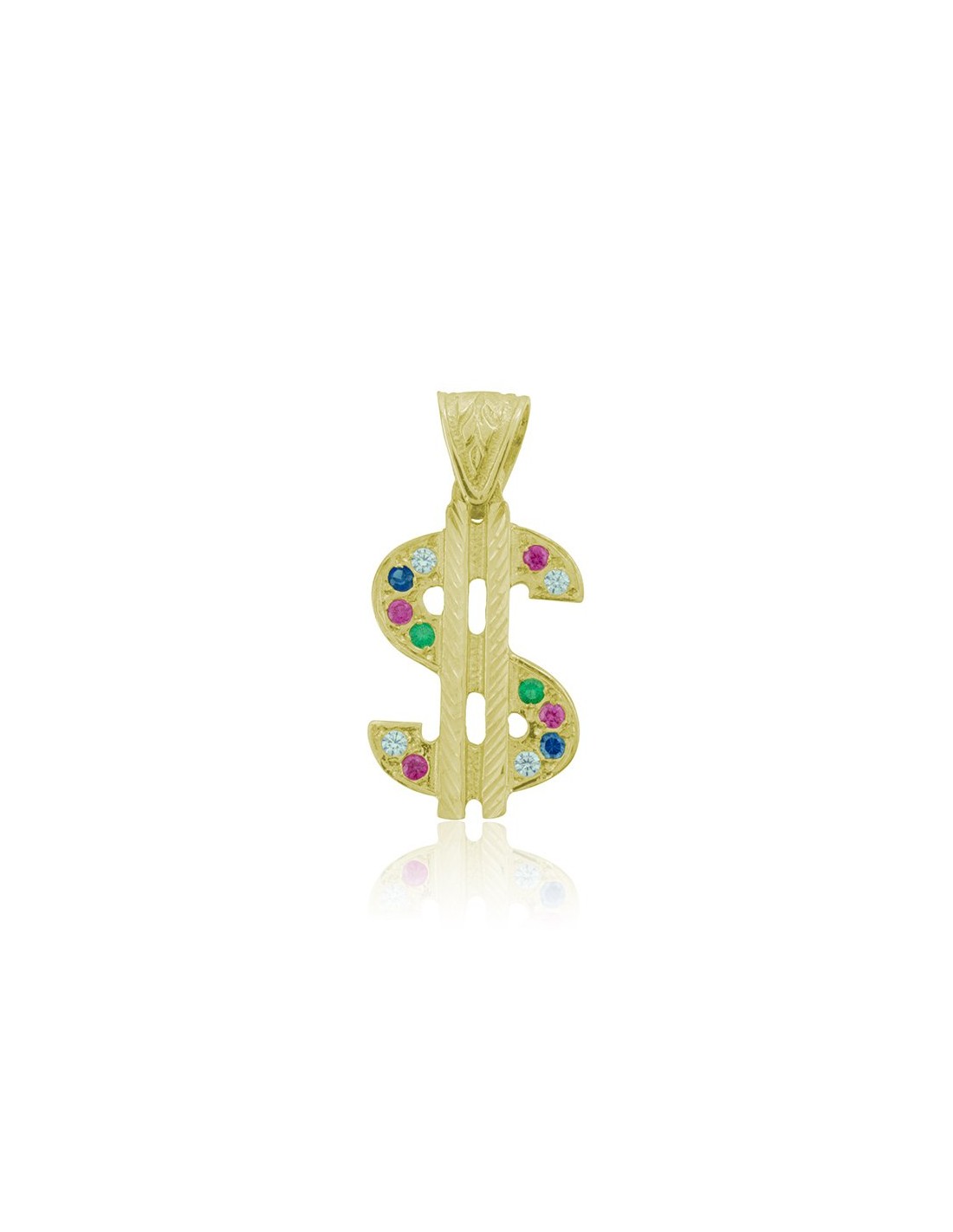 Colgante Oro 9k Dolar Piedras Color