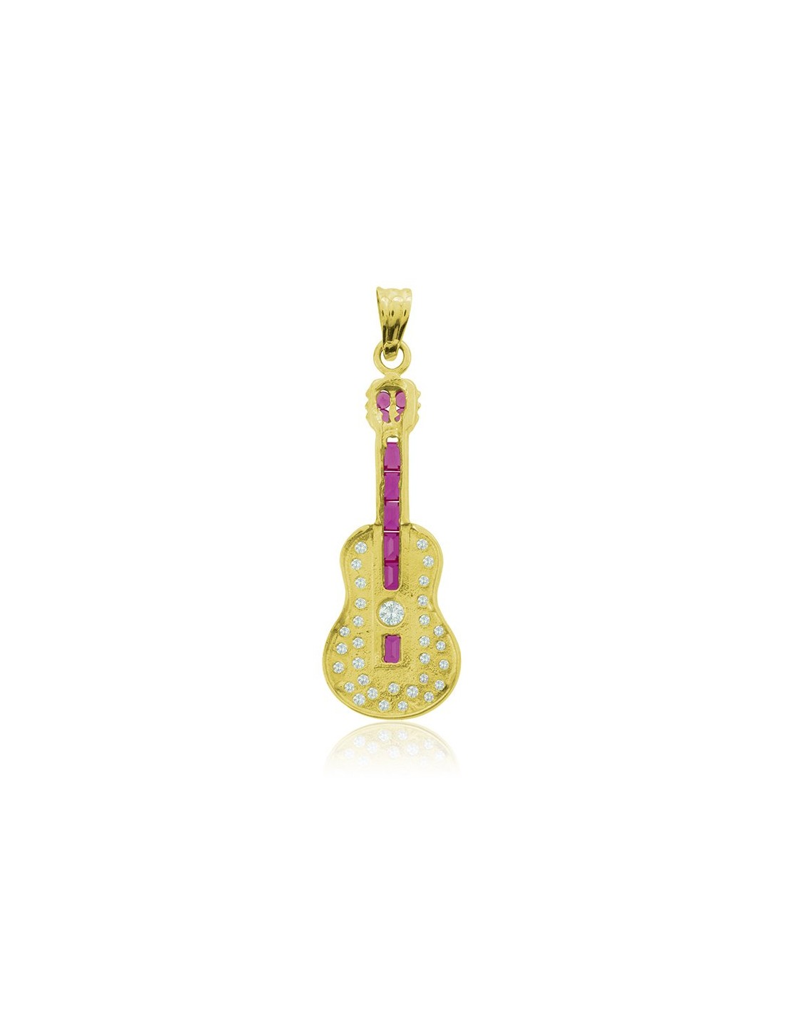 Colgante en Oro 8 quilates con forma de guitarra y piedras color decorativas.
