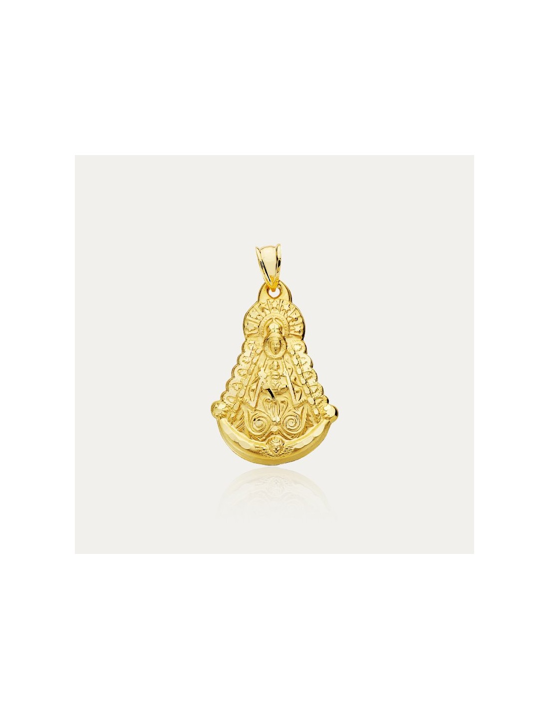 Colgante de Virgen del Rocío en Oro de 18 kilates ideal para disfrutar en las fiestas de Huelva o recordarla en tu día a día.