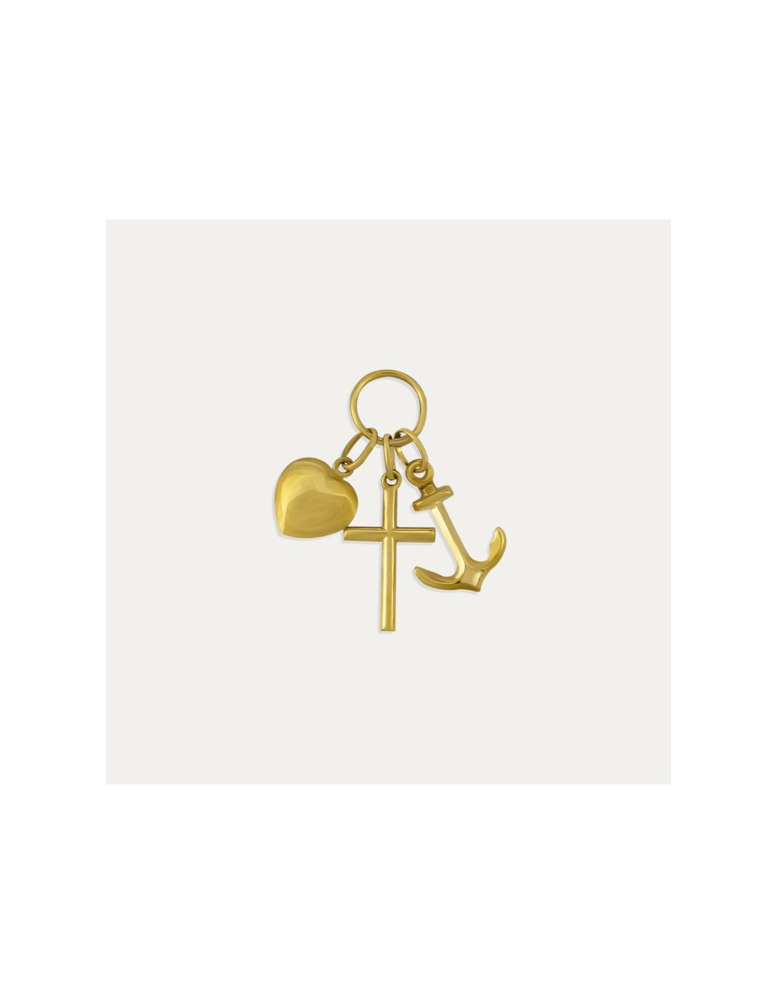Colgante Oro 3 en 1 Corazón Ancla Y Cruz