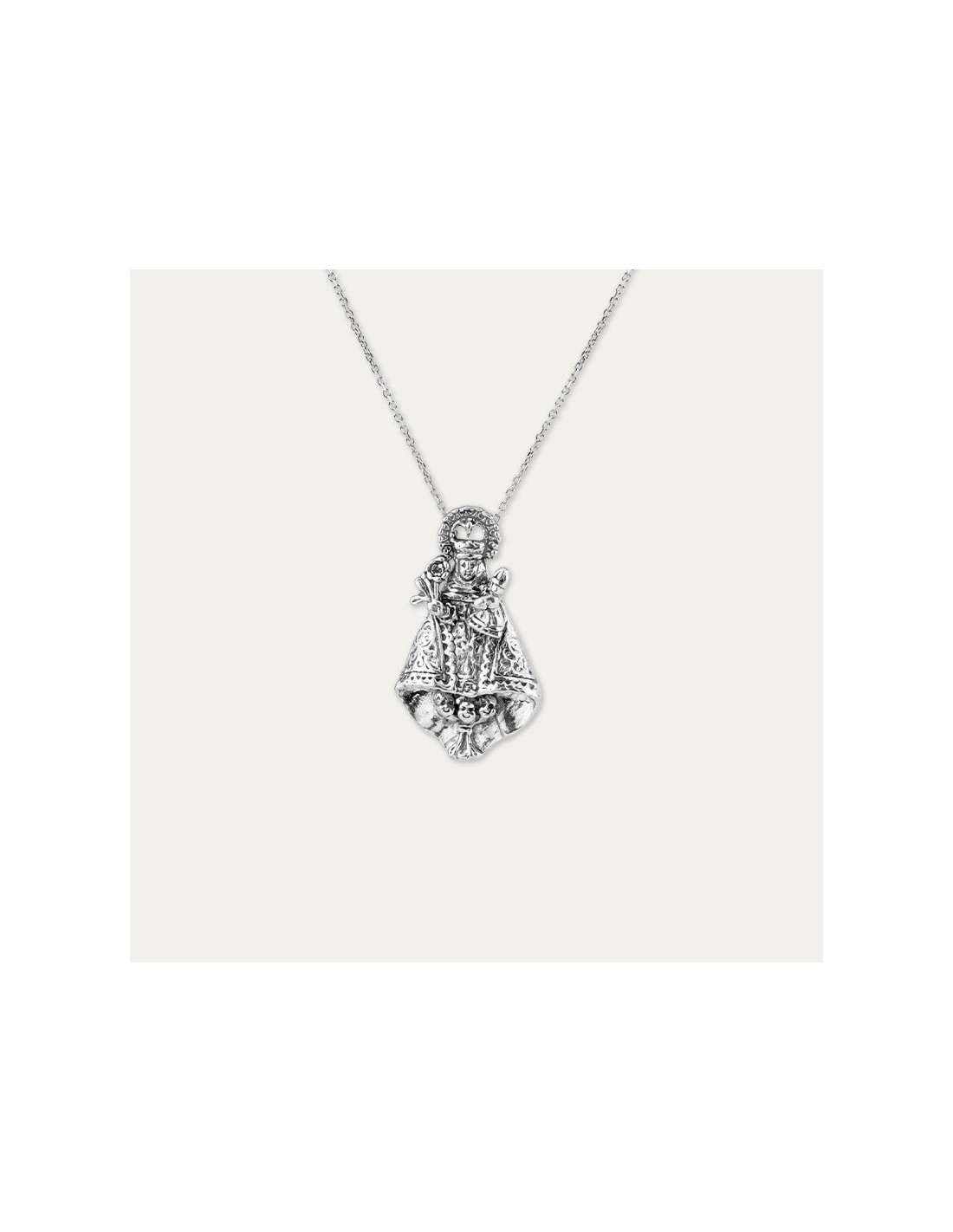 Cadena y colgante de plata con forma de virgen de Covadonga. Colgante especial con un tamaño muy adecuado que quedará perfecto en cualquier ocasión.