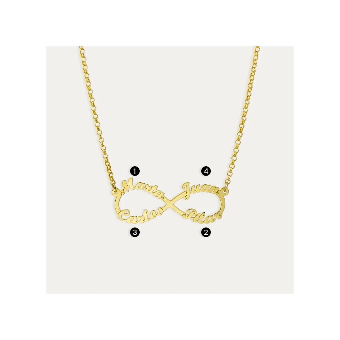 Collar Plata Dorada Cuatro Nombres Personalizados Infinito