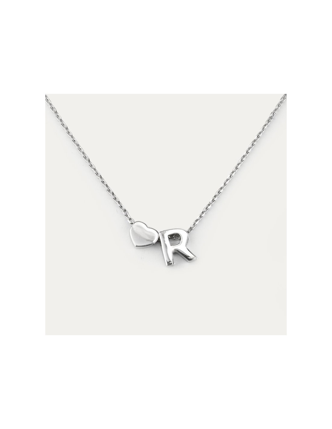 Collar con letra personalizada, con un añadido de un corazón que hace de ésta una pieza mucho más especial. Plata 925 mlm.