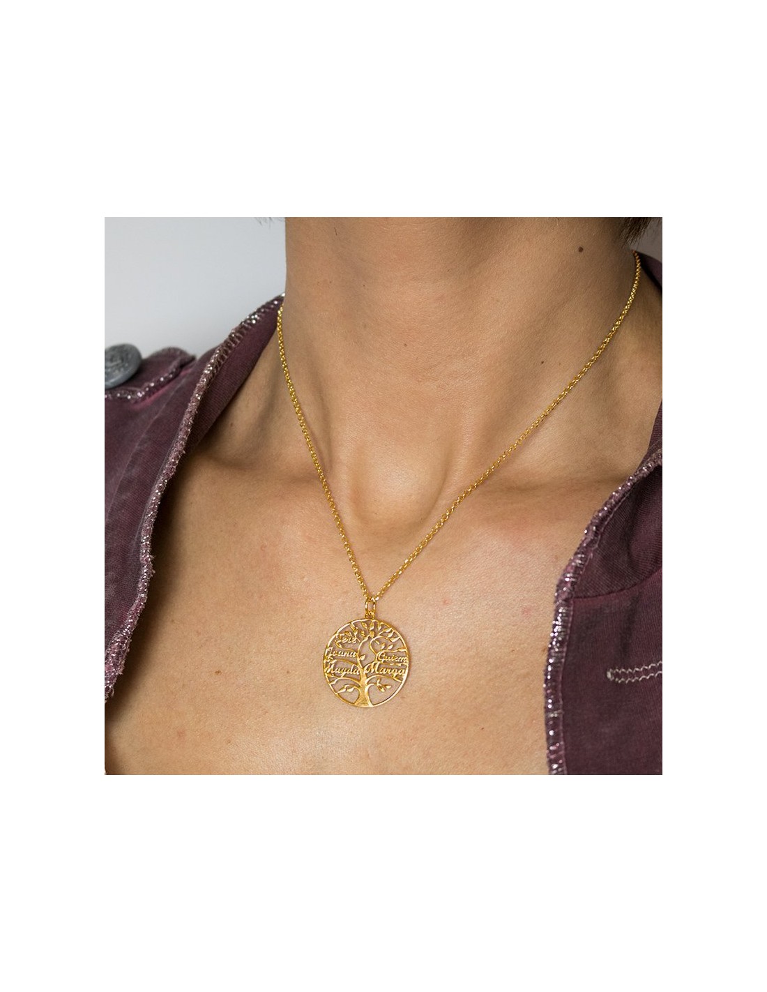 Collar de oro 9k con motivo árbol de la vida y hasta seis nombres personalizados