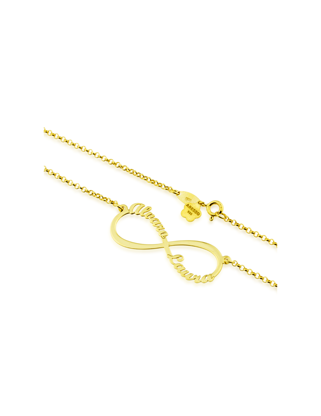 Gargantilla con forma de infinito personalizado con nombres en Oro 9k. No se pueden grabar acentos.