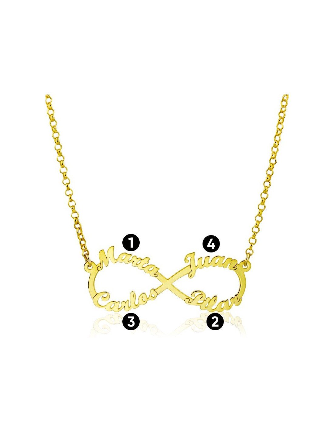 Collar Oro 9k Cuatro Nombres Personalizados Infinito