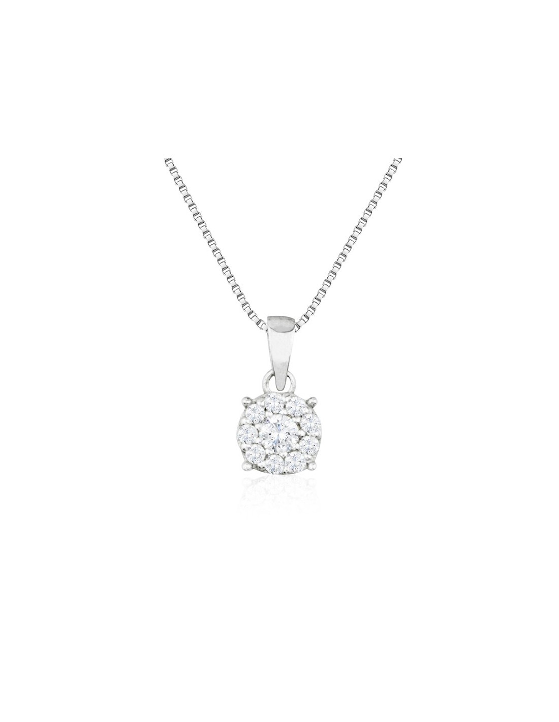 Cadena más colgante en Oro de 18 kilates blanco con diamantes engastados en cuatro garras. Espectacular y llamativo gracias a su cuidado diseño.