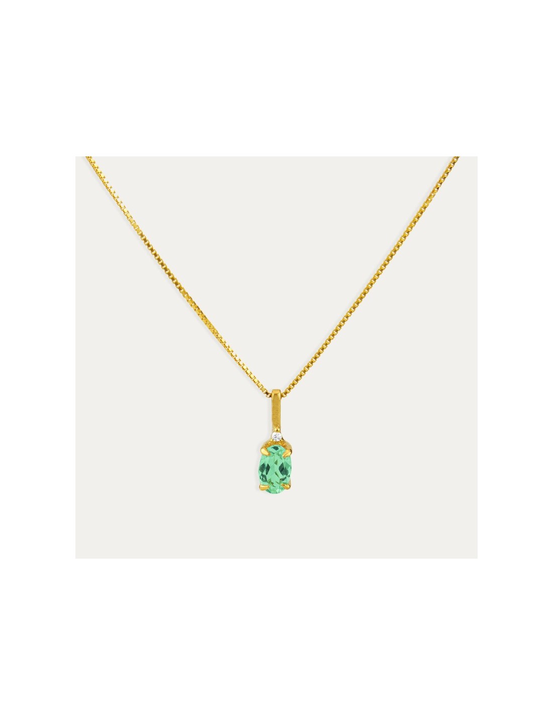 Gargantilla más colgante elaborado en oro de 18 quilates con esmeralda natural y un brillante. Disfruta de esta pieza única hecha para ti.