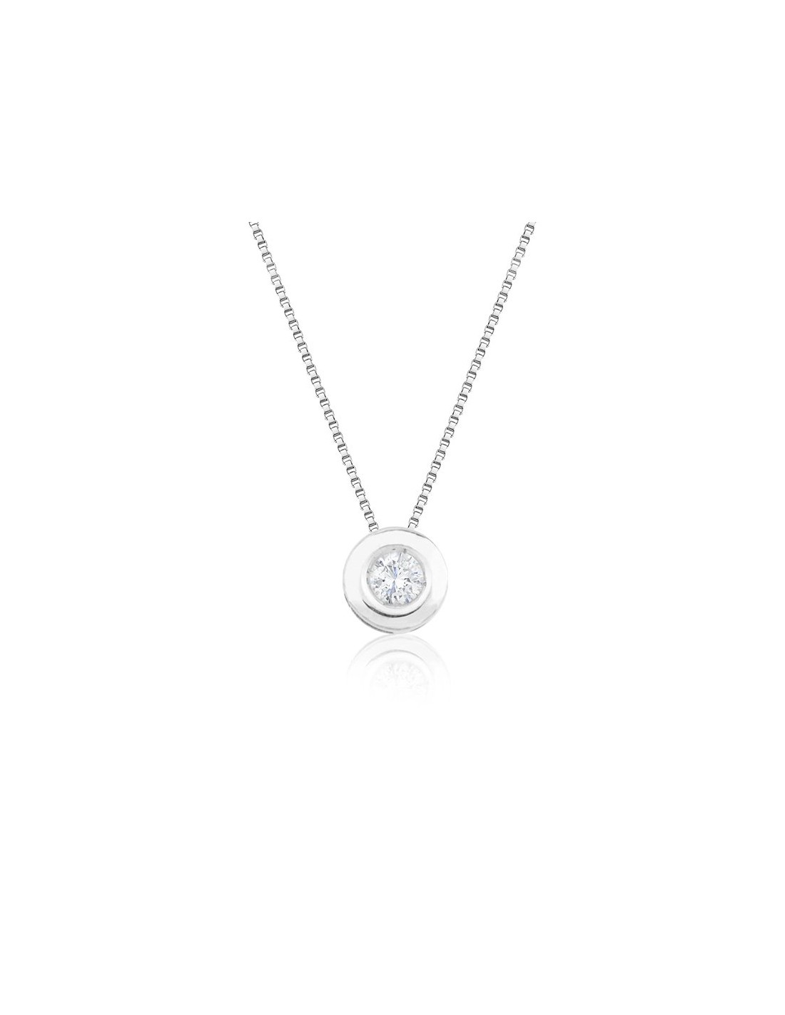 Collar Oro 18k Blanco Diamante Chatón Pireo