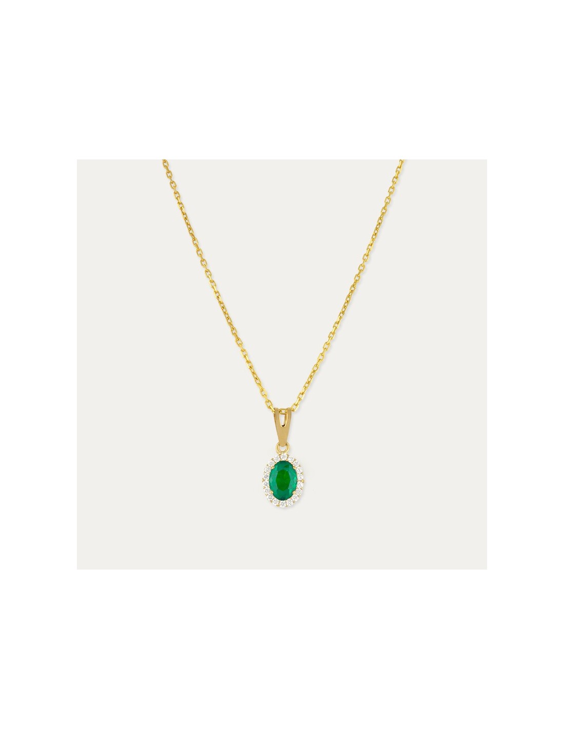 Collar en Oro de 9k con Piedra Color Esmeralda y Circonitas Zaesru