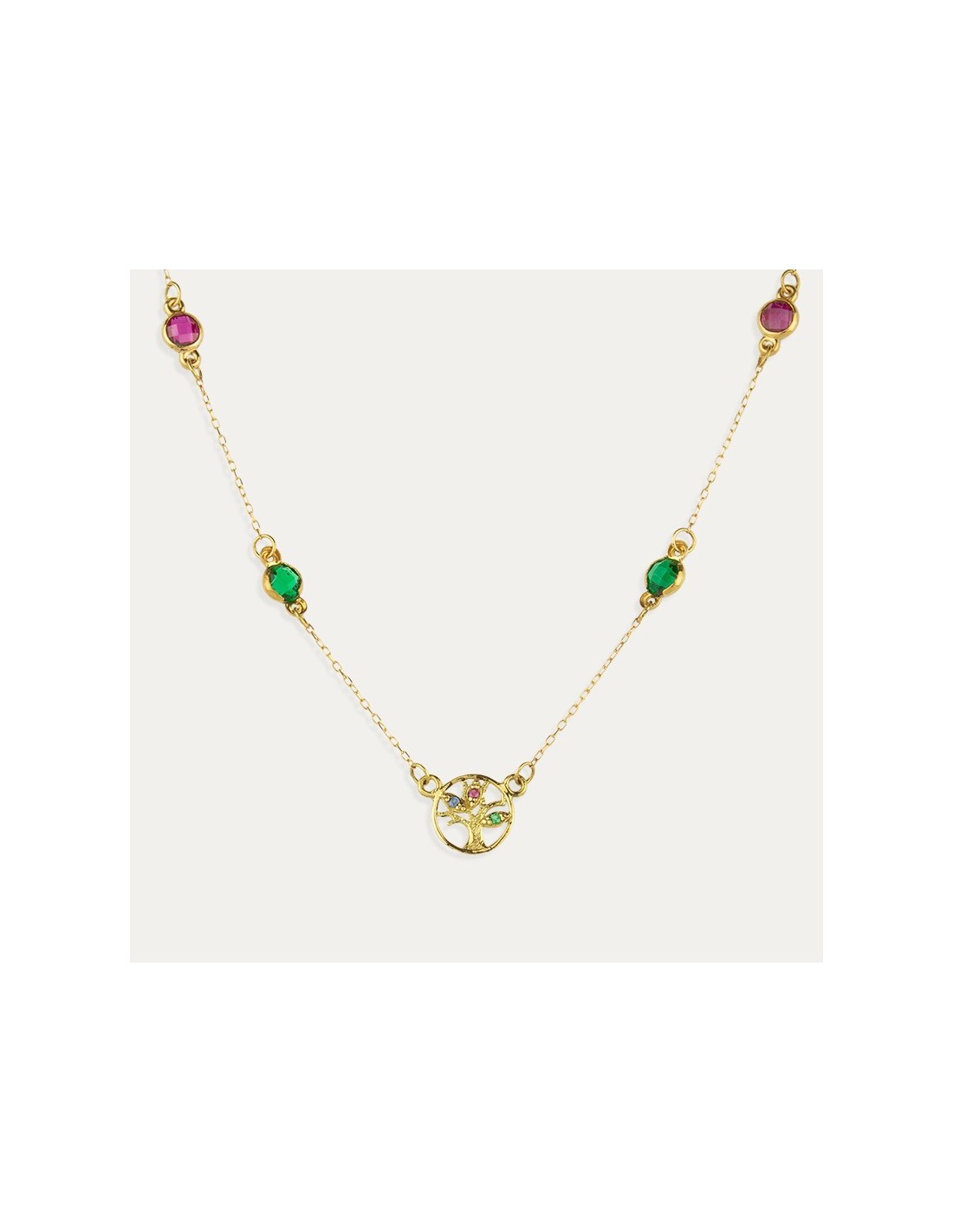 Collar de Oro con Piedras de Color y Árbol Sussy