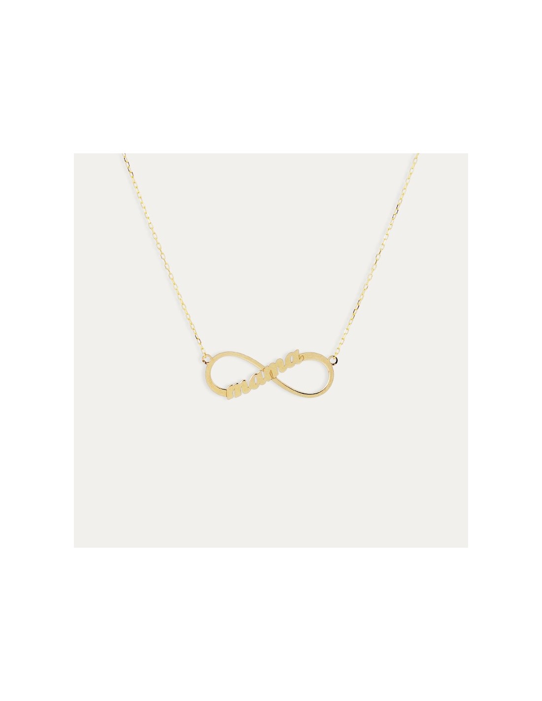 Cadena más colgante elaborado en Oro de 9 kilates con motivo de infinito y la palabra Mamá en el interior. Una pieza perfecta para el Día de la Madre.