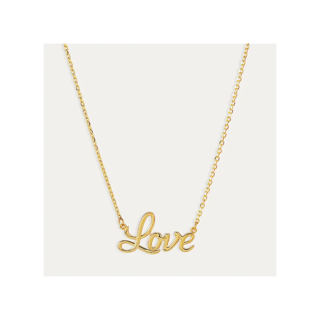 Cadena más colgante con la palabra "Love" fabricada en oro de 18 quilates, un collar perfecto para San Valentín.