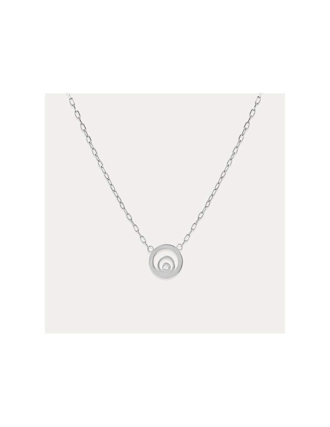 Gargantilla en Oro Blanco 9 kilates con círculo decorado con un Diamante.