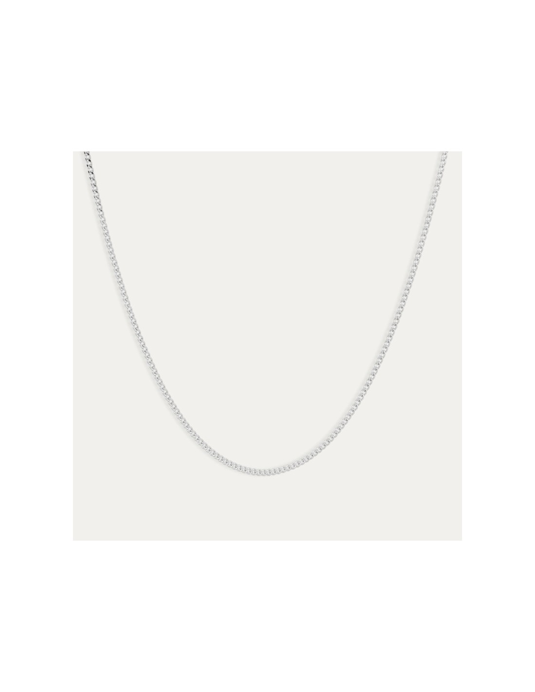 Cadena clásica, de estilo barbada y un acabado brillante, de plata primera ley 925 mlm.