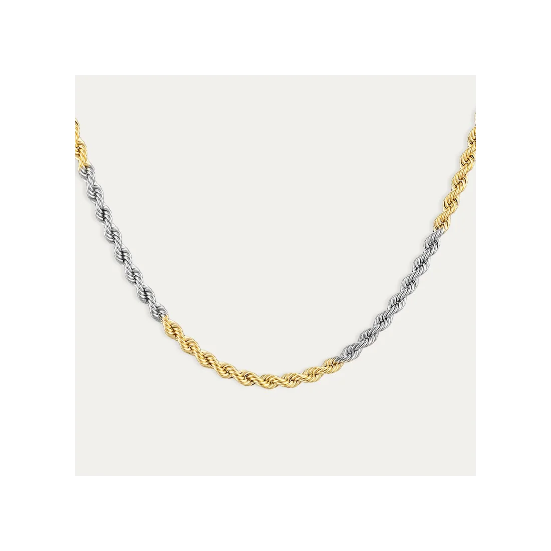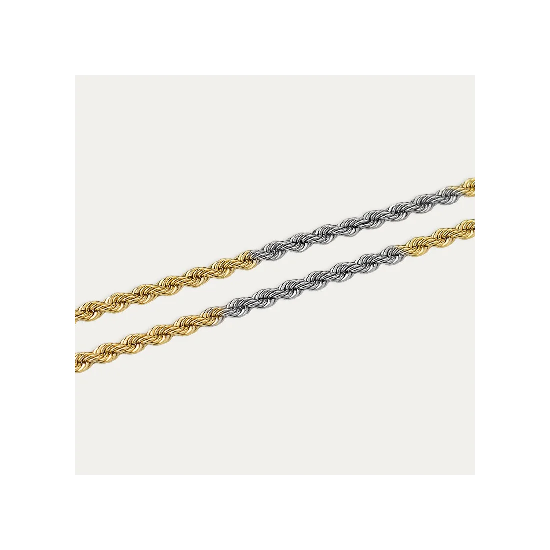 Cadena en Oro de 18 quilates, fabricado en oro blanco y oro amarillo. Sutil y elegante como ninguno.