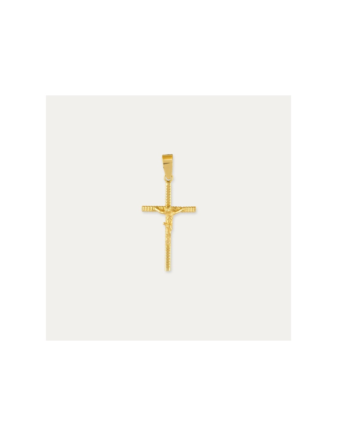Colgante Oro 18k Cruz Rayada Cristo Divine