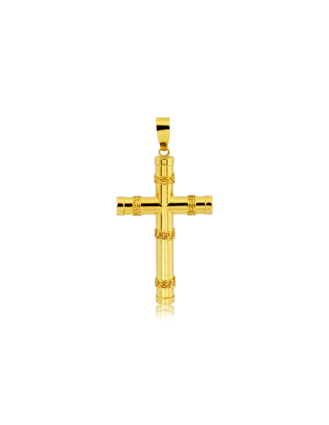 Cruz lisa con forma de tubos en oro amarillo de 18 kilates.