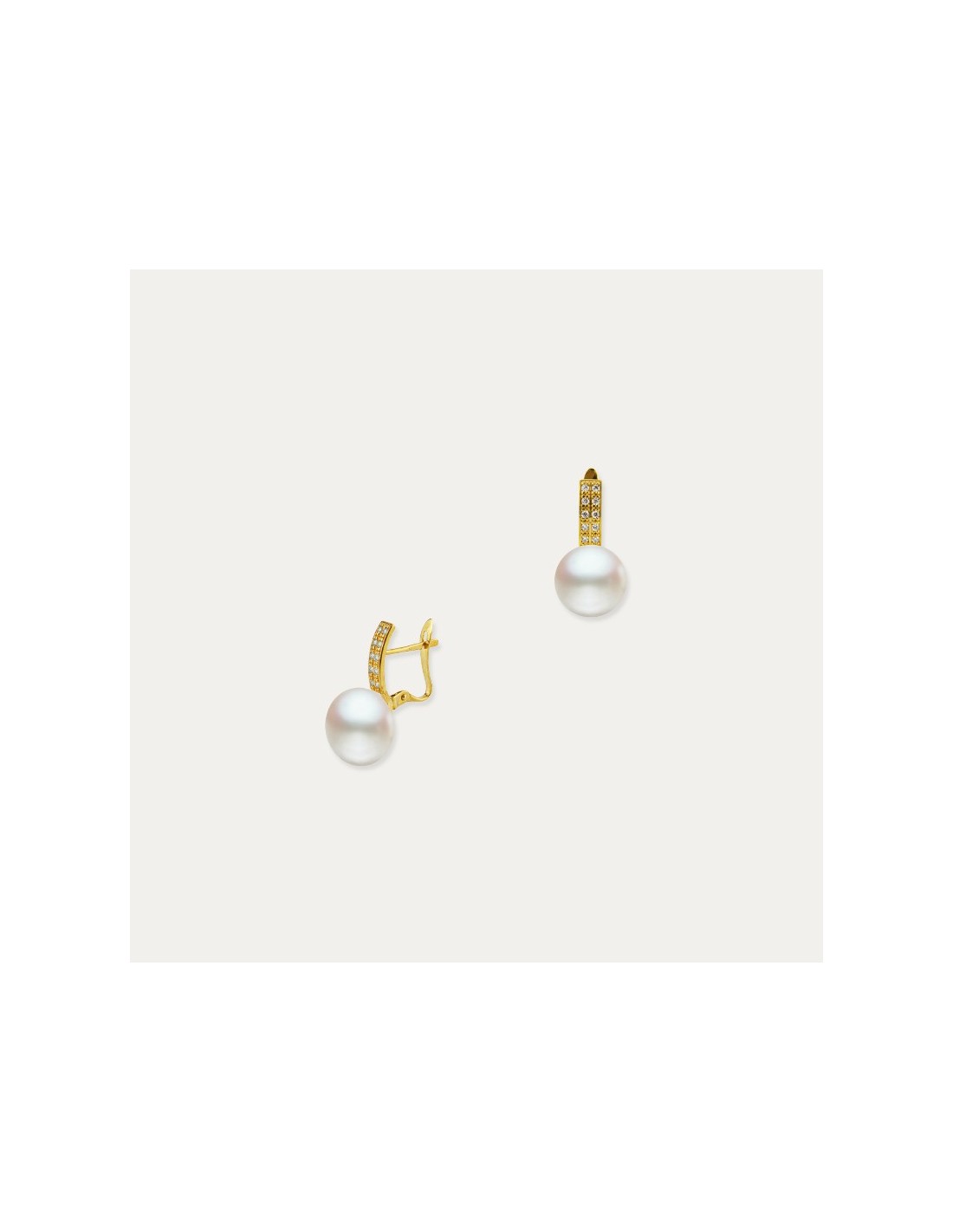 Pendientes de oro de 9 quilates con perlas y pequeñas piedras de circonita. Estilo de cierre omega-catalán.