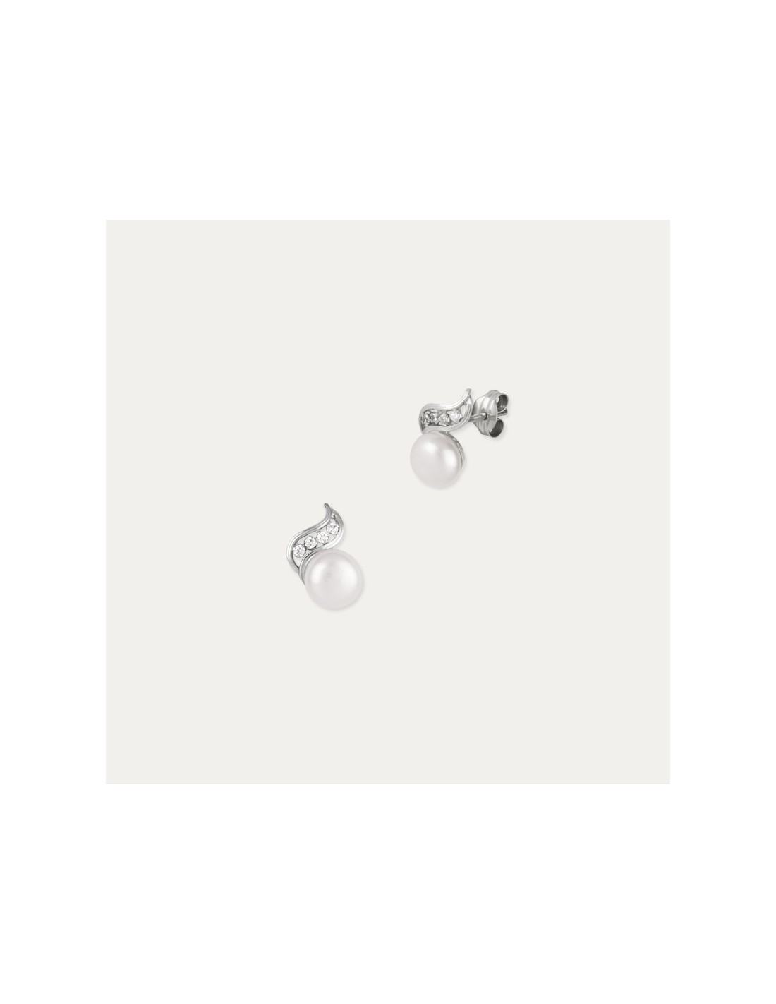 Pendientes de Oro 18k Blanco con Circonitas y Perla Jain