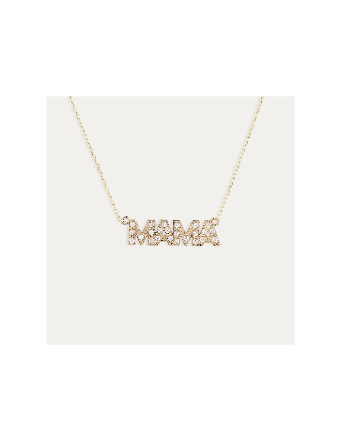 Cadena más colgante especial Día de la Madre con la palabra Mamá y completado con circonitas engastadas, una joya espectacular fabricada en Oro de 9 kilates.