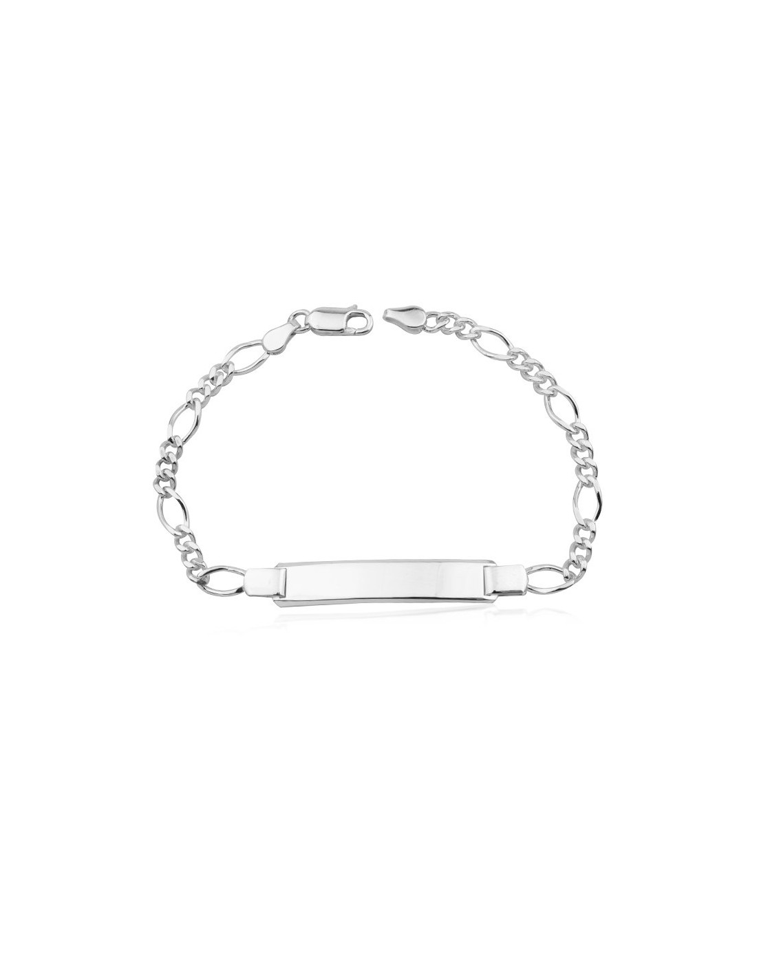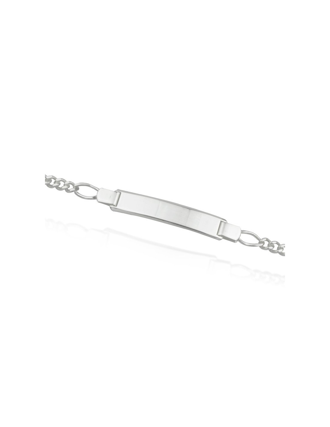 Pulsera en Plata de Primera Ley con chapa rectangular estilo esclava y eslabones alternos tres cortos por uno largo.
