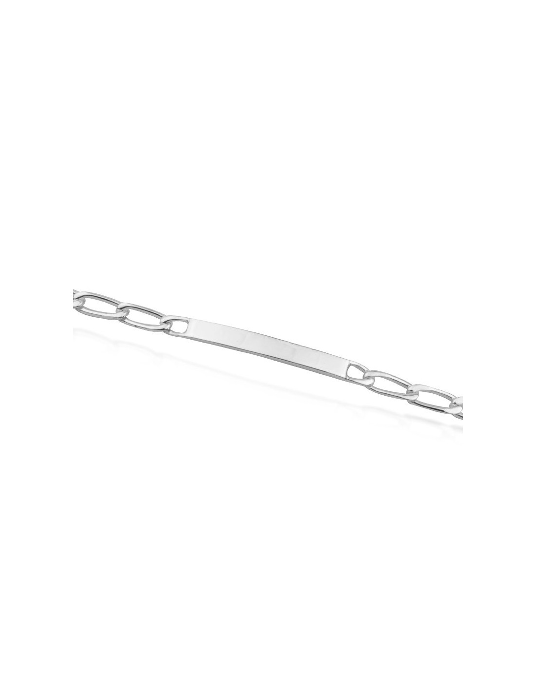 Pulsera en Plata de Primera Ley con chapa rectangular estilo esclava y cadena estilo Fígaro.