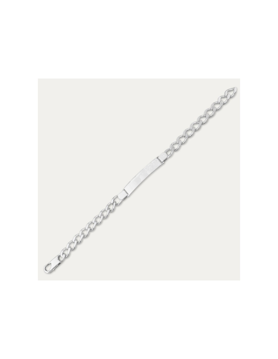 Pulsera estilo esclava en Plata Primera Ley con eslabones estilo barbados amplios y cierre de mosquetón integrado. Una pulsera ideal para personalizar con un nombre, es una joya para llevar a diario y que luzca en nuestra muñeca.