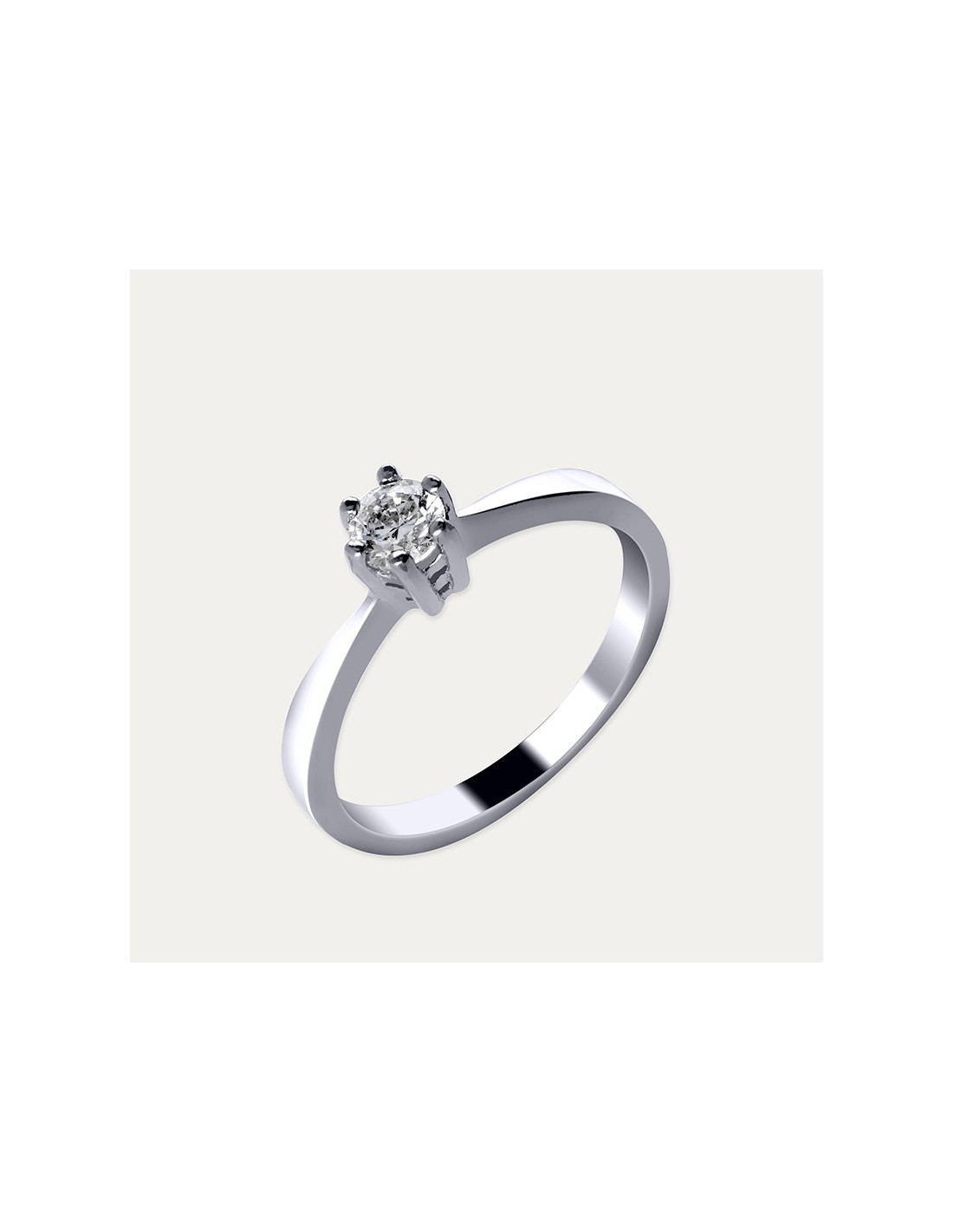 Anillo en Oro 18 kilates blanco con diamante creado en laboratorio en seis garras. Anillo precioso con un toque de encanto y dulzura.