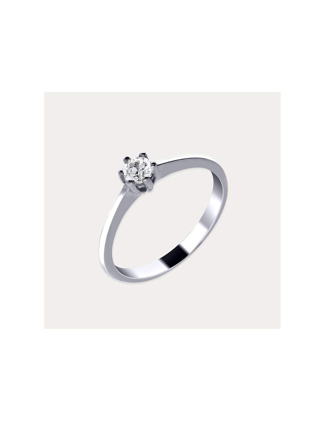 Anillo en Oro 18 kilates blanco con diamante creado en laboratorio en seis garras. Un anillo que simboliza la perfección del amor, que captura la esencia del compromiso y la fidelidad.