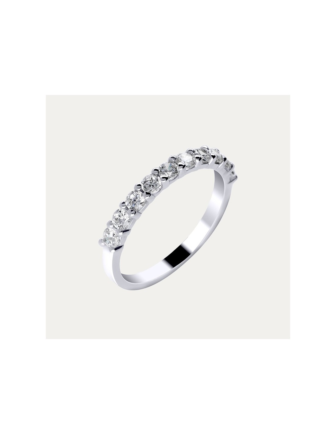 Sortija en Oro 18 kilates blanco con diamantes creados. Un anillo que transmite un aire de sofisticación y refinamiento, con un brillo cautivador y elegante.