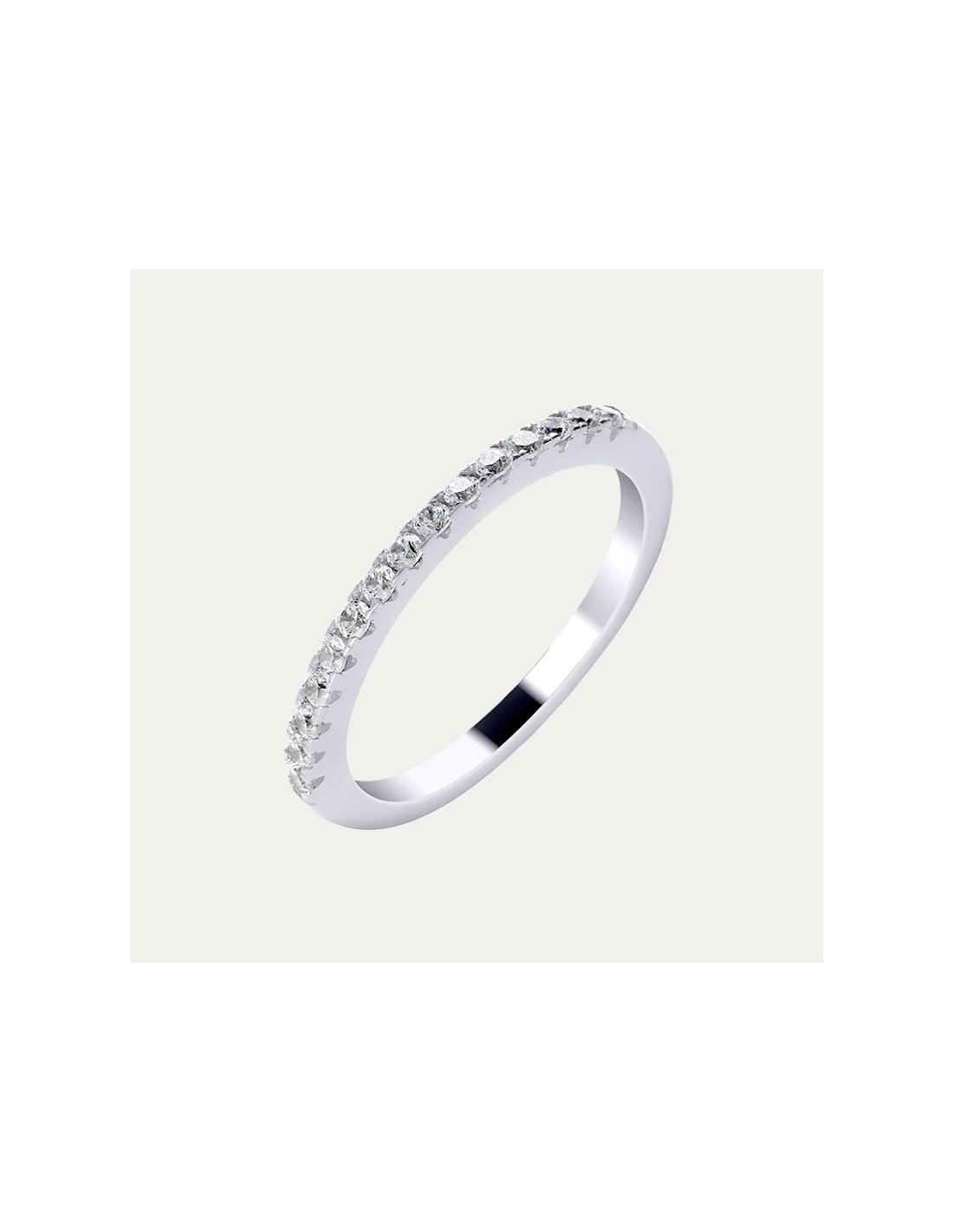 Sortija en Oro 18 kilates blanco con diamantes creados. Un anillo con diamantes engastados en una línea, que combina la fuerza y la elegancia en una sola pieza.