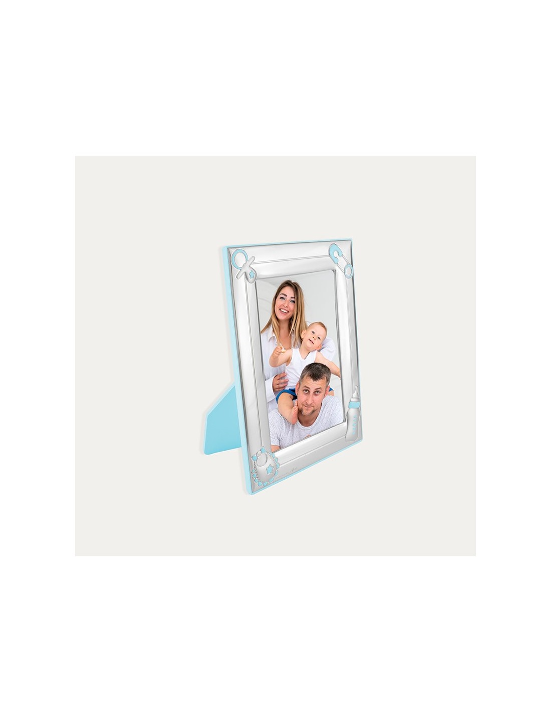Marco en Plata de Primera Ley 925 mlm con detalles infantiles en azul con bordes cuadrados. Ideal para hacer perdurar esos preciosos recuerdos de toda la familia.