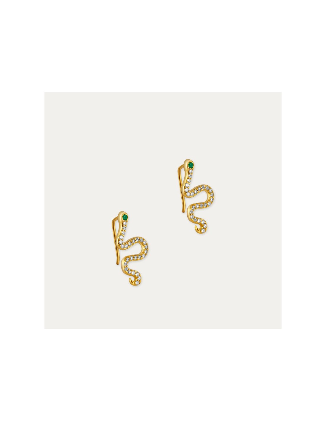 Pendientes de aro en Plata dorada con una serpiente con ojos verdes. Unos pendientes para lucirlos en conjunto o a modo piercing para esta primavera-verano ¡Unidades limitadas!