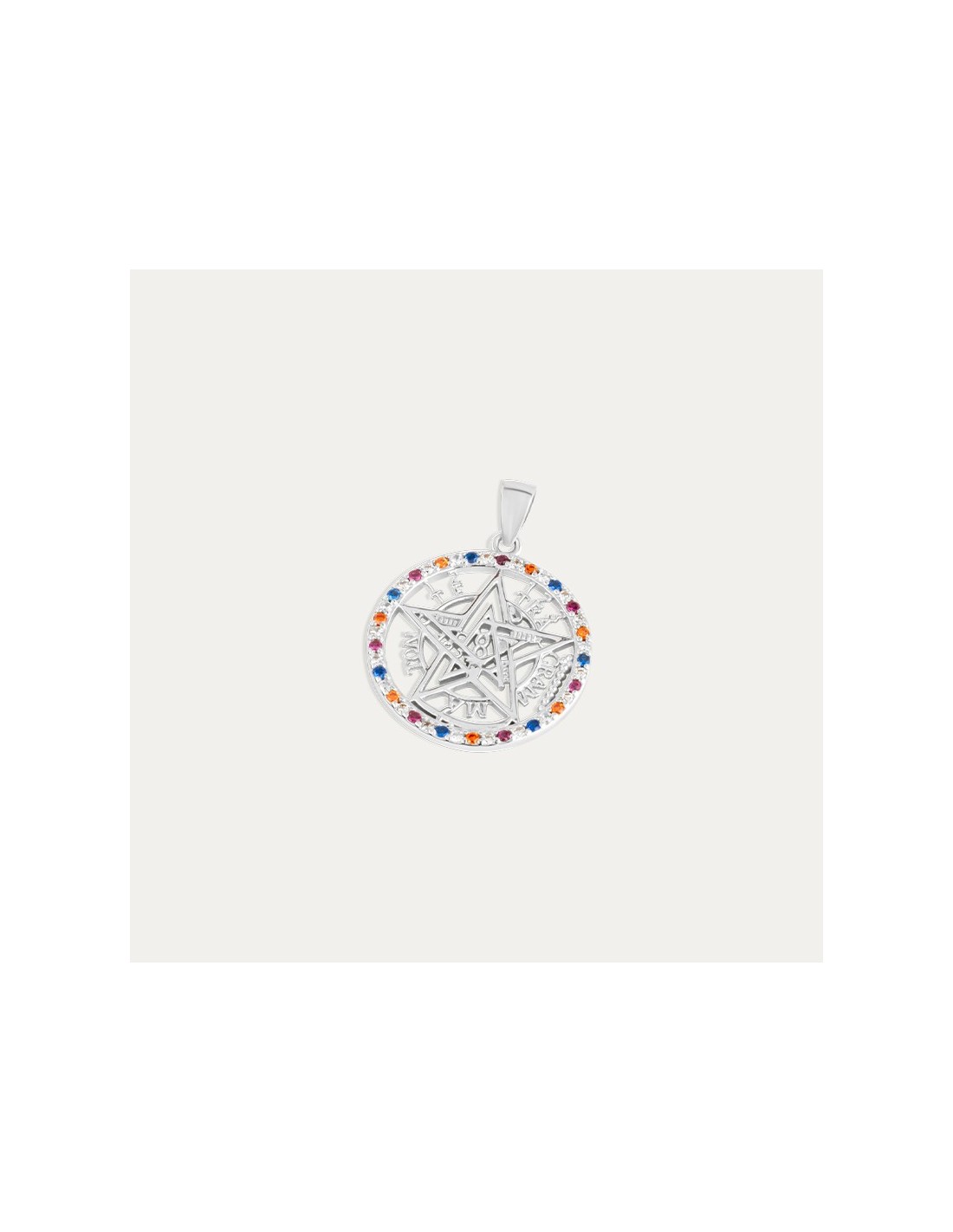 Colgante en Plata de Tetragrammaton con Piedras de Colores