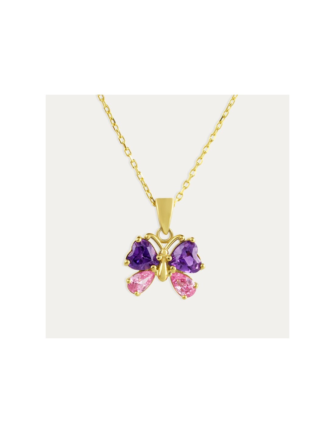 Conjunto de cadena más colgante de mariposa con piedras de color amatista y rosa de Francia, fabricada en Oro de 9 kilates. Descubre toda la Colección Nectar.