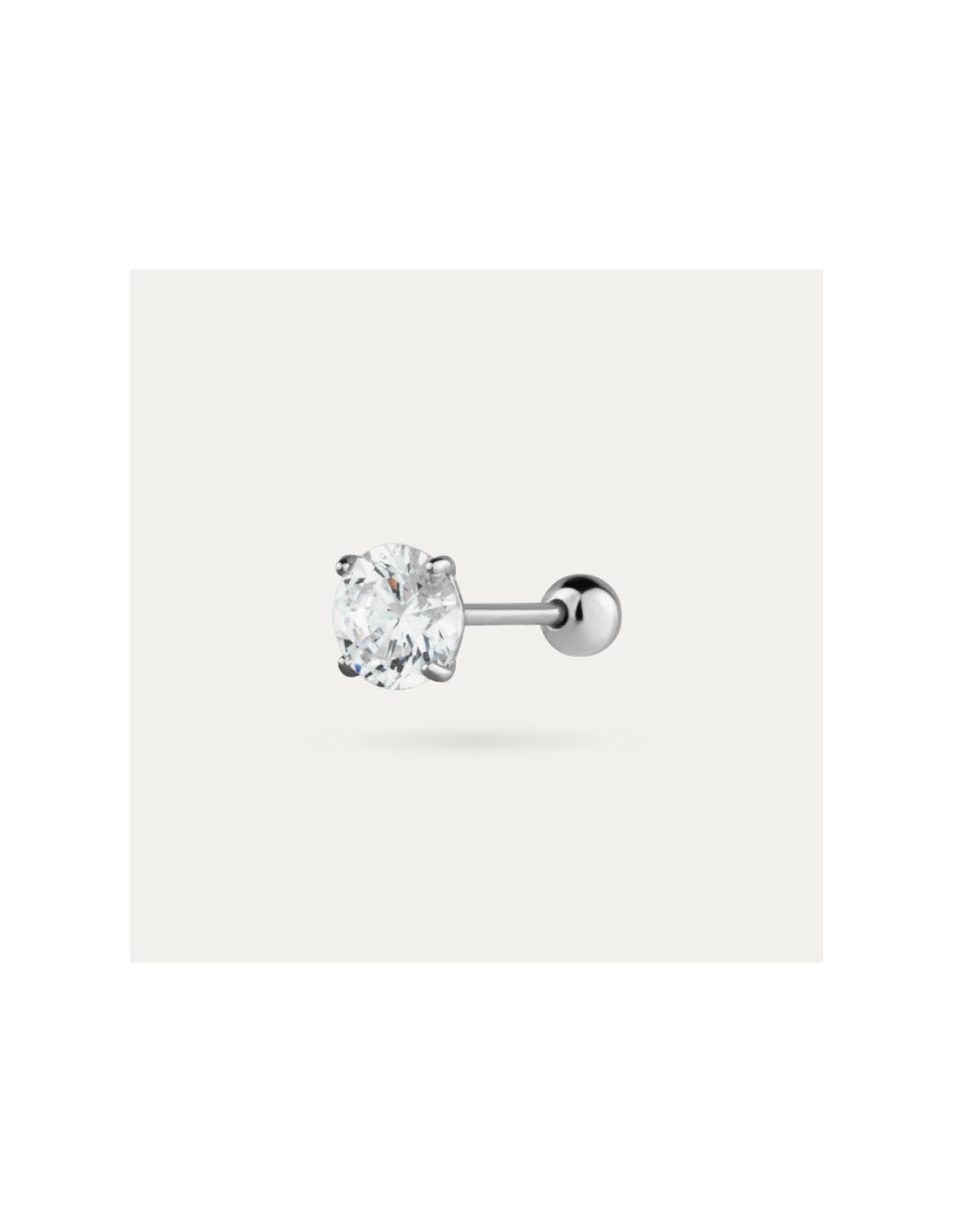 Pendiente tipo piercing con una gran circonita en garras, fabricado en Plata de Primera Ley con cierre de bola.