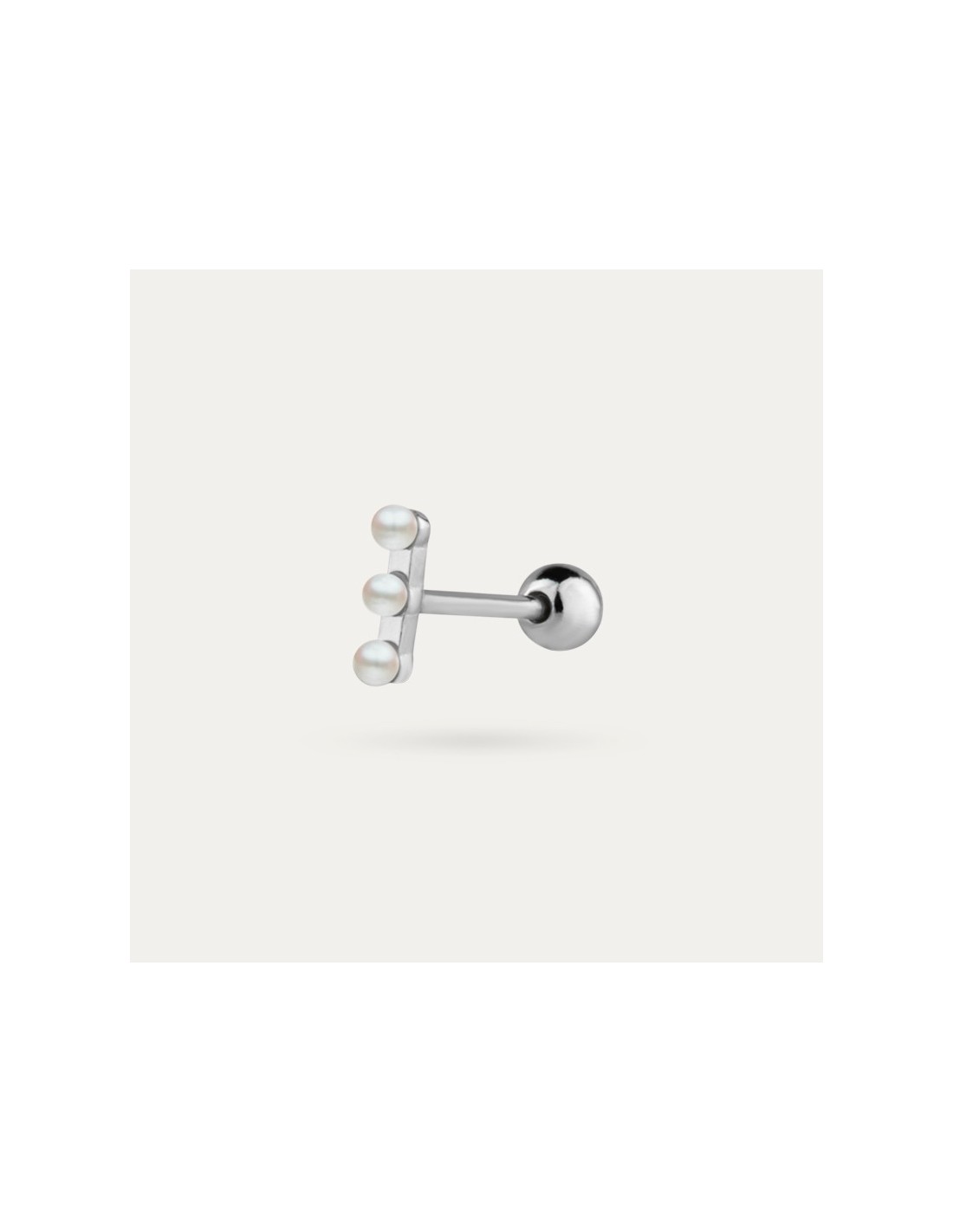 Pendientes de Plata de Primera Ley de estilo piercing con tres pequeñas perlitas y cierre de bola en rosca.