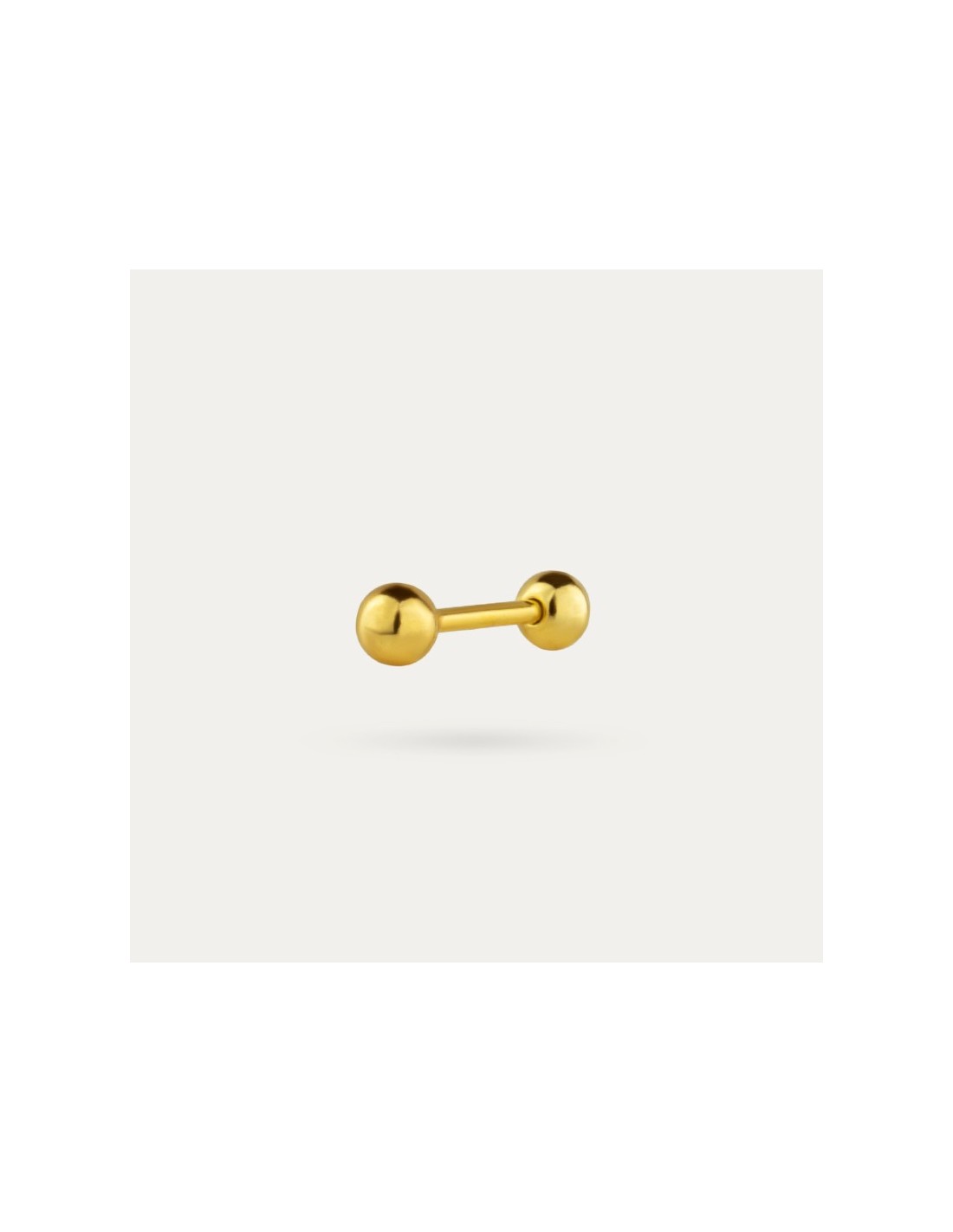Pendiente de estilo piercing con doble bola en Plata de Primera Ley dorada con cierre de rosca.