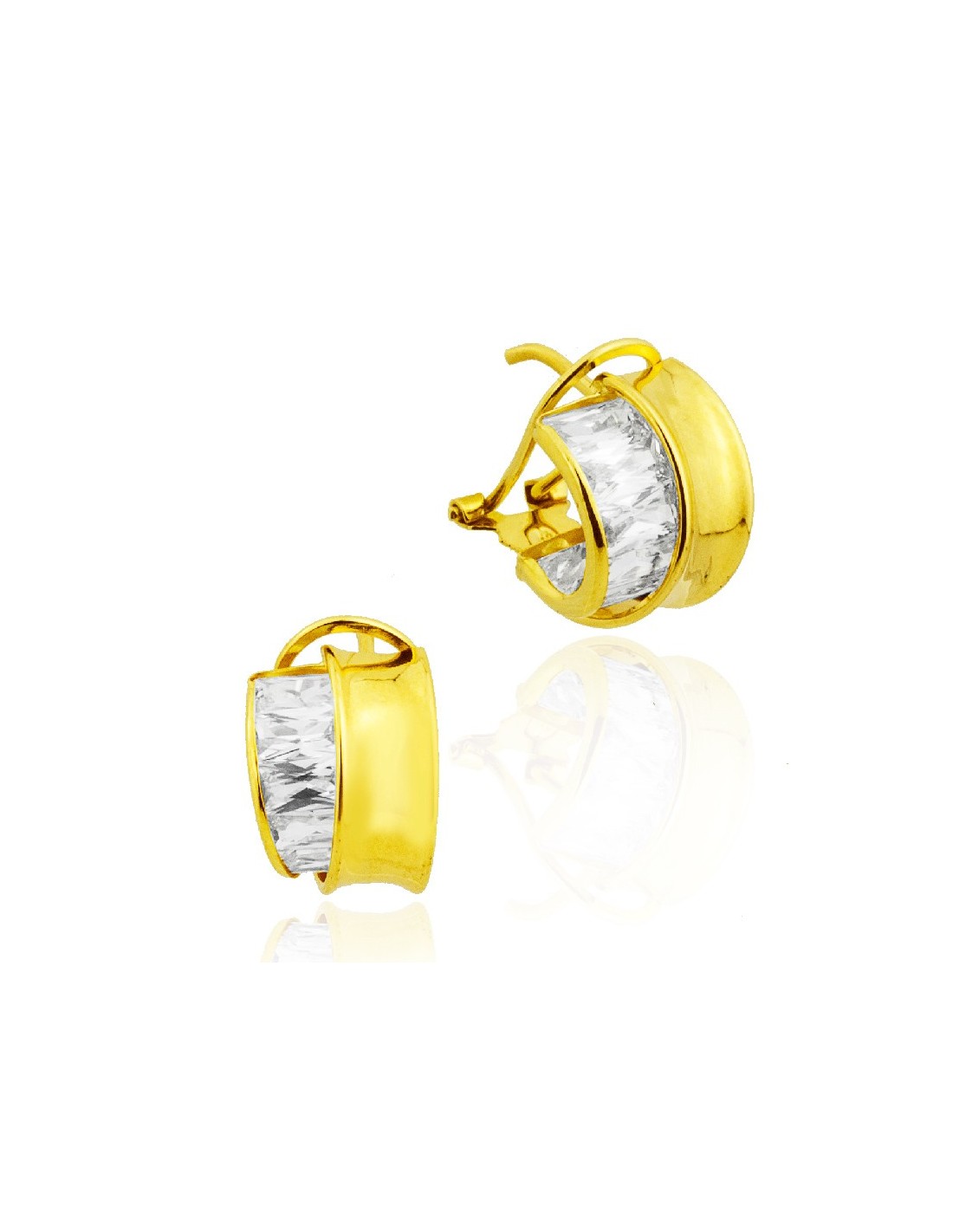 Pendientes oro 18 quilates con piedra lateral y un potente cierre omega.