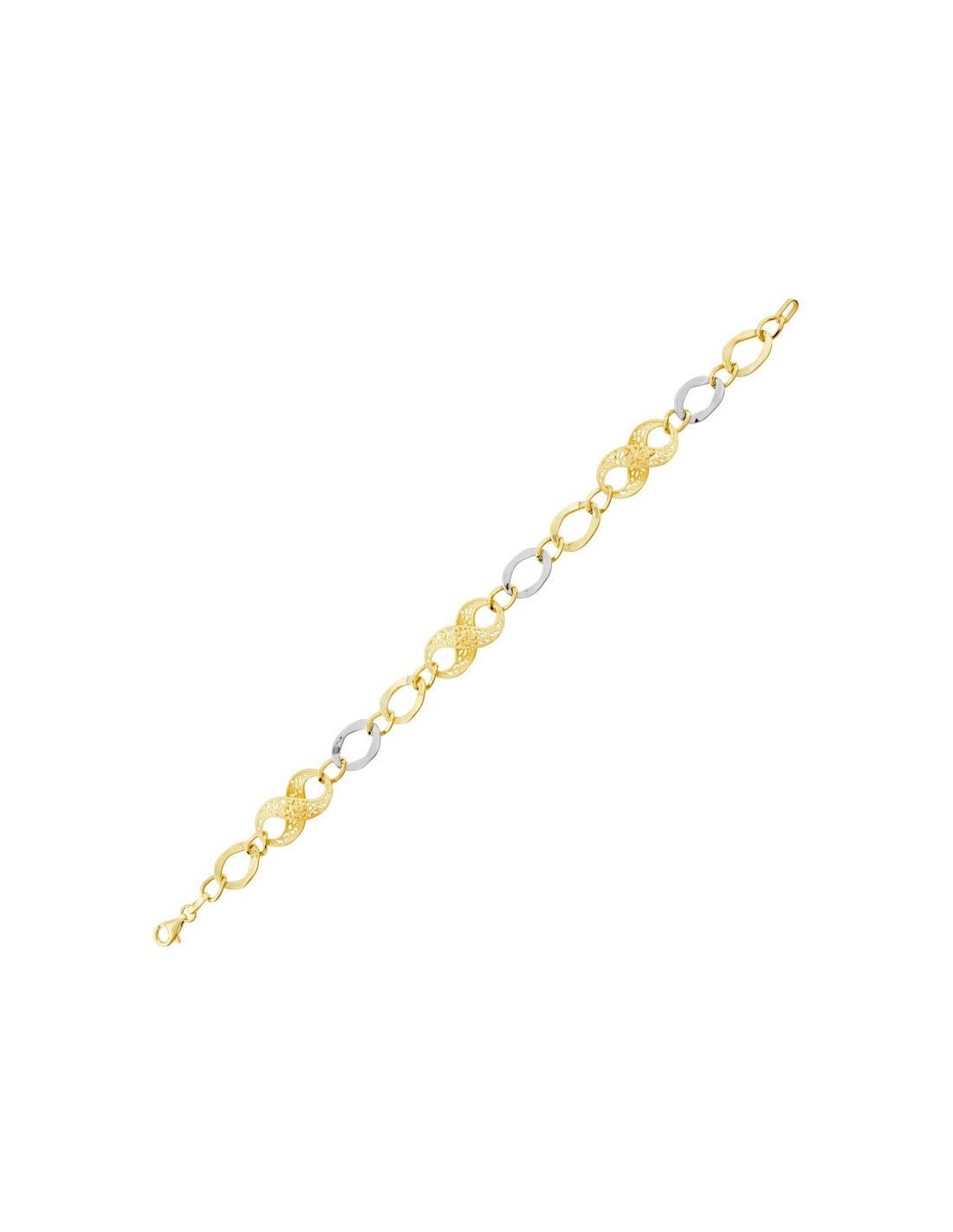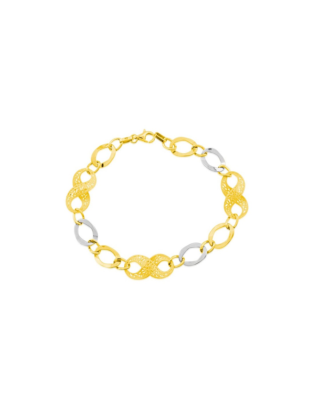 Pulsera en Oro 9 quilates amarillo y blanco con eslabones tipo infinito y cierre mosquetón.