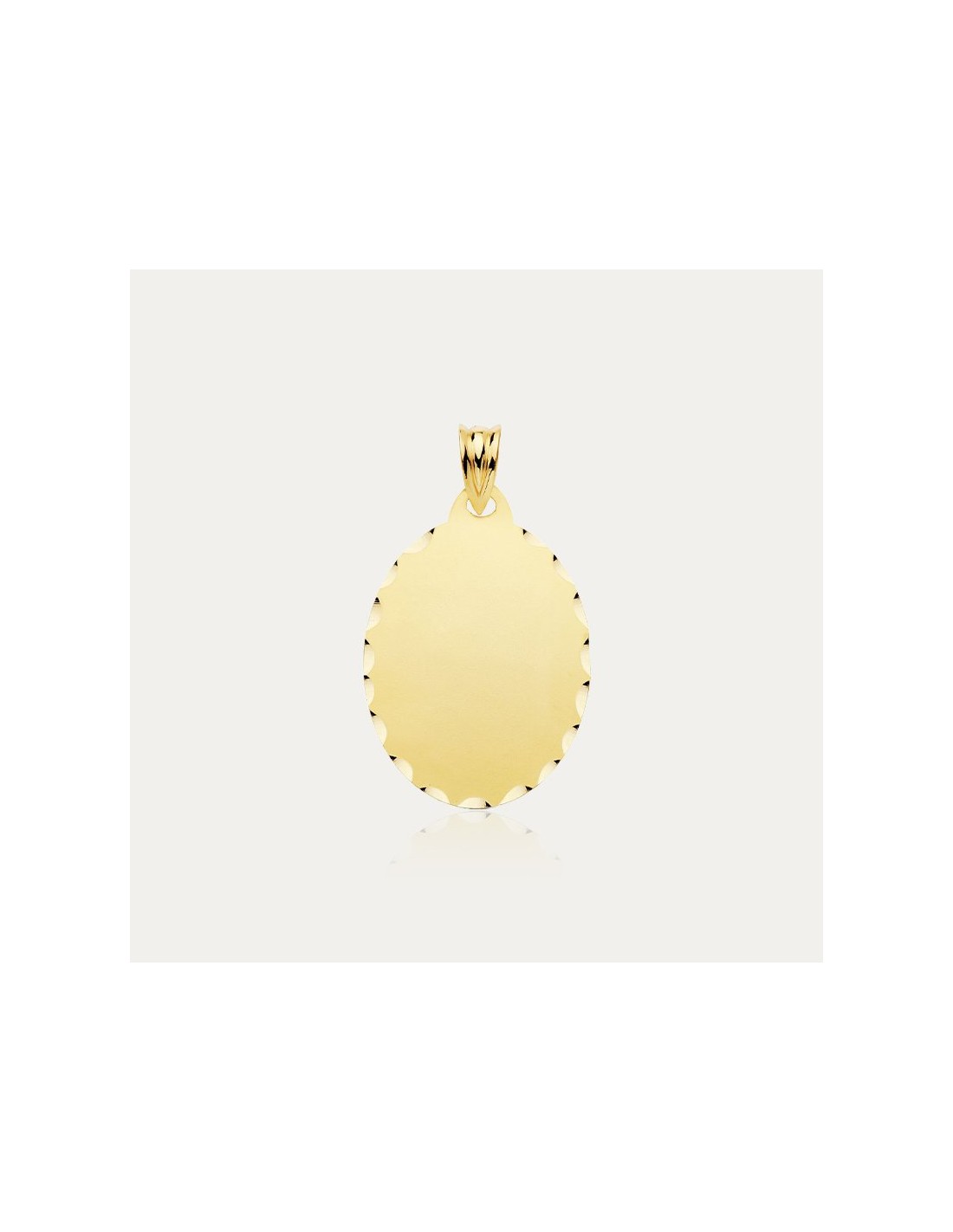 Chapa en Oro 18 kilates con forma ovalada y acabado en brillo ideal para grabar con una foto o una frase especial.